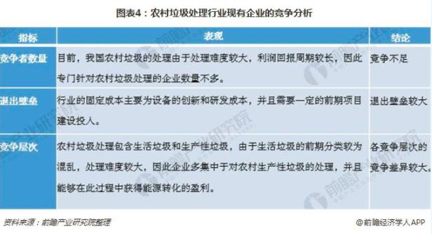 以下分别从竞争数量、行业增长率、退出壁垒、竞争层次分析现有企业的竞争情况。分析可得,行业处于起步发展阶段,企业之间的竞争尚不激烈。行业进入者少,处理缺口大。