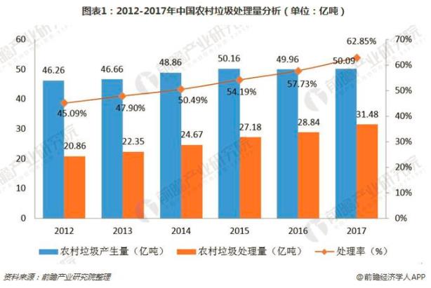从农村垃圾产生量来看,我国农村垃圾处理缺口还有差不多20亿吨,缺口巨大。