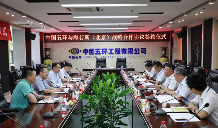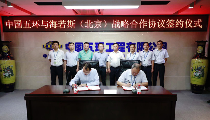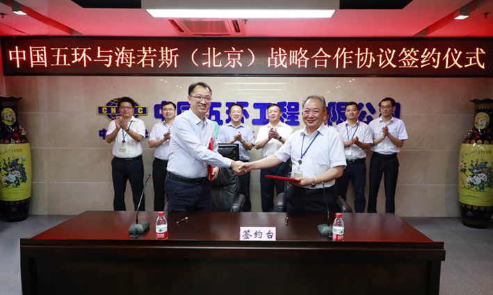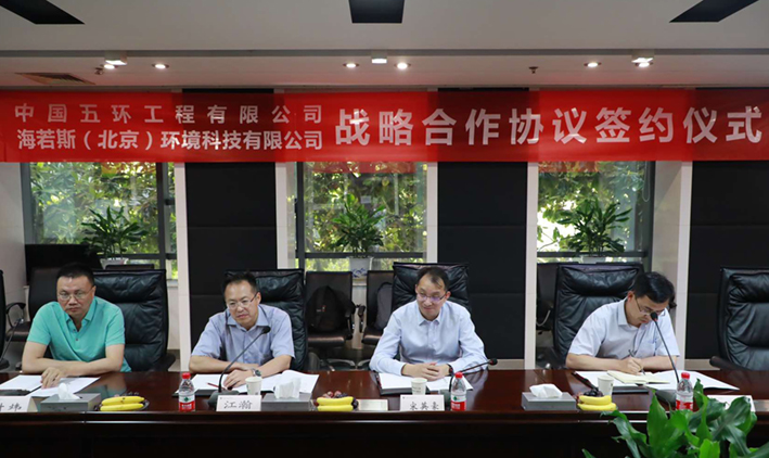 2019年6月24日,海若斯(北京)环境科技有限公司(以下简称“海若斯”)与中国五环工程有限公司(以下简称“中国五环”)的战略合作协议在武汉签署。在中国五环董事长程腊春和北京首创股份有限公司(以下简称“首创股份”)副总经理江瀚的共同见证下,中国五环副总经理张太生和海若斯董事长宋英豪代表双方签署了协议。
